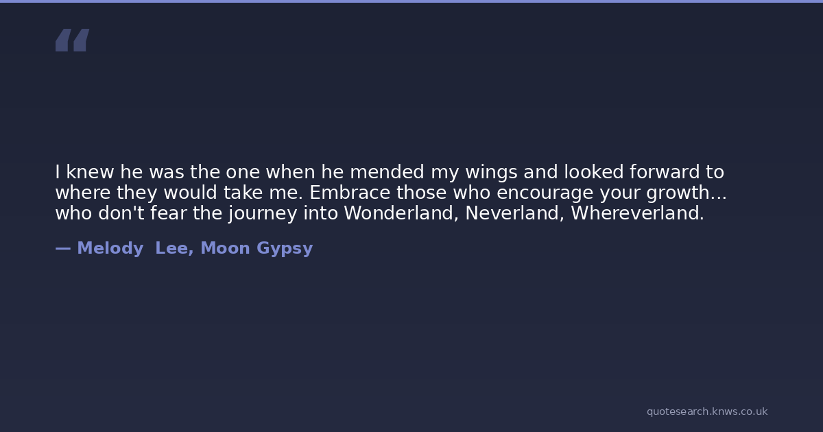 I knew he was the one when he mended my wings and looked forward to where they would take me. Embrace those who encourage your growth... who don't fear the journey into Wonderland, Neverland, Whereverland.