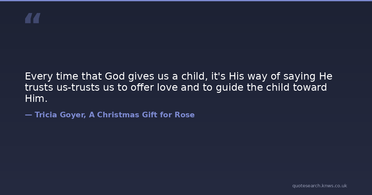 Every time that God gives us a child, it's His way of saying He trusts us-trusts us to offer love and to guide the child toward Him.