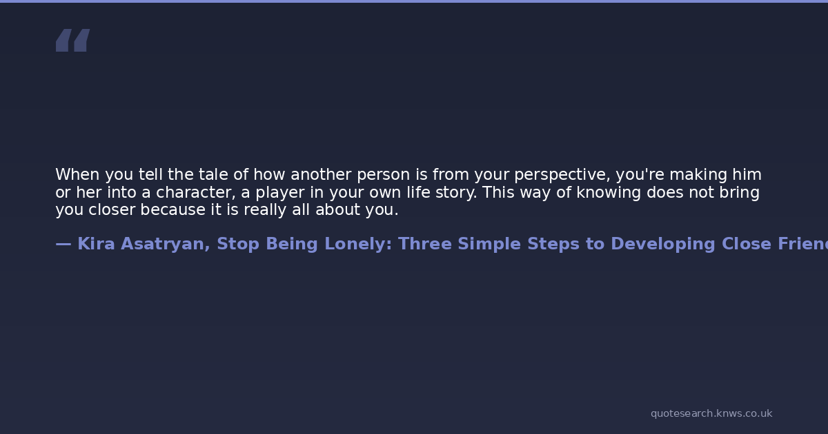 When you tell the tale of how another person is from your perspective, you're making him or her into a character, a player in your own life story. This way of knowing does not bring you closer because it is really all about you.