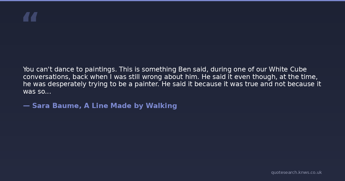 You can't dance to paintings. This is something Ben said, during one of our White Cube conversations, back when I was still wrong about him. He said it even though, at the time, he was desperately trying to be a painter. He said it because it was true and not because it was something either of us wanted to hear.