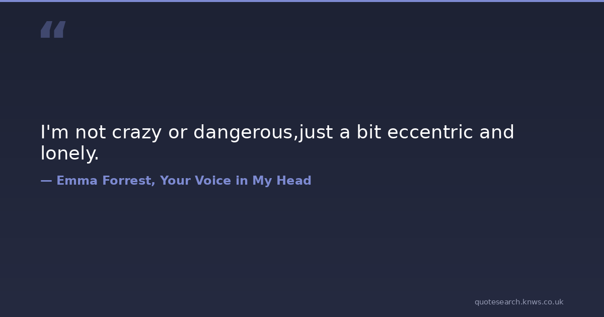 I'm not crazy or dangerous,just a bit eccentric and lonely.