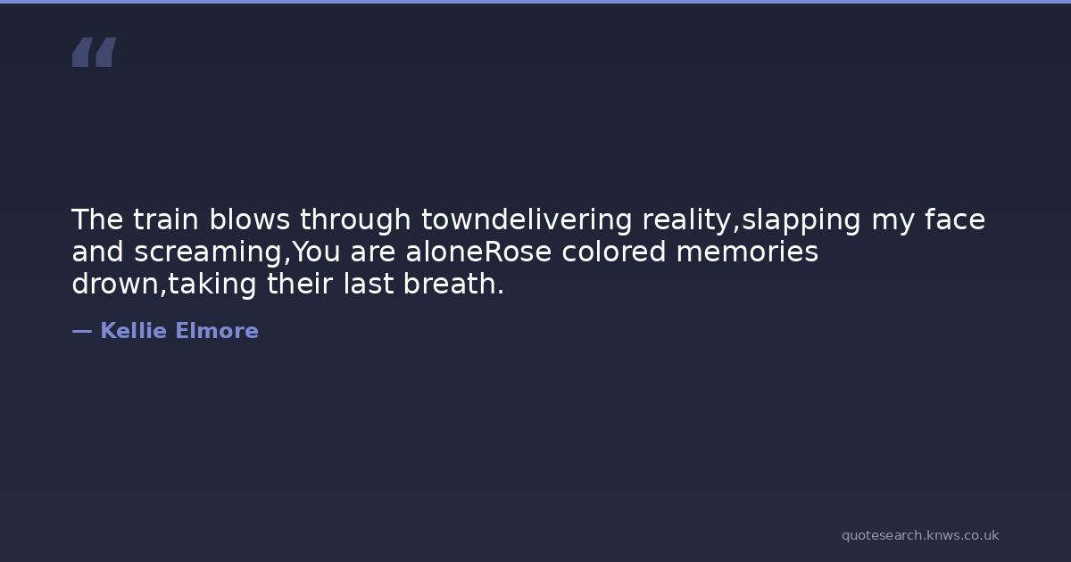 The train blows through towndelivering reality,slapping my face and screaming,You are aloneRose colored memories drown,taking their last breath.