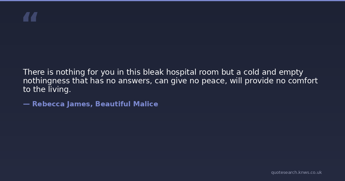 There is nothing for you in this bleak hospital room but a cold and empty nothingness that has no answers, can give no peace, will provide no comfort to the living.