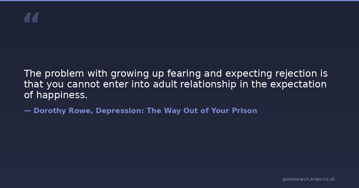 The problem with growing up fearing and expecting rejection is that you cannot enter into adult relationship in the expectation of happiness.