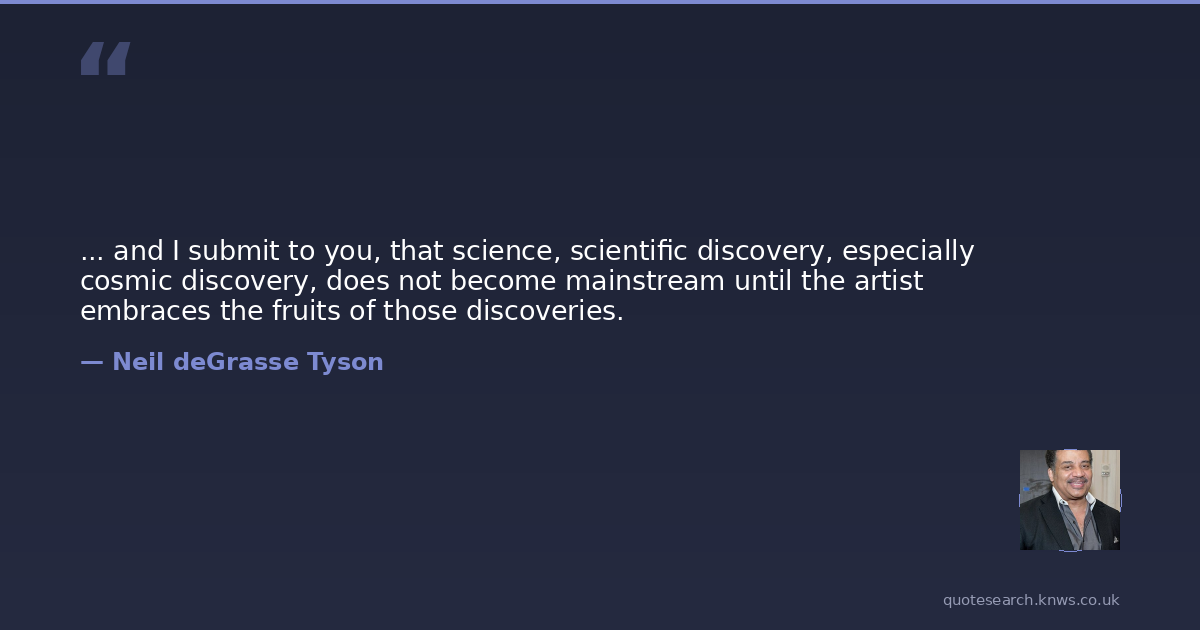 ... and I submit to you, that science, scientific discovery, especially cosmic discovery, does not become mainstream until the artist embraces the fruits of those discoveries.
