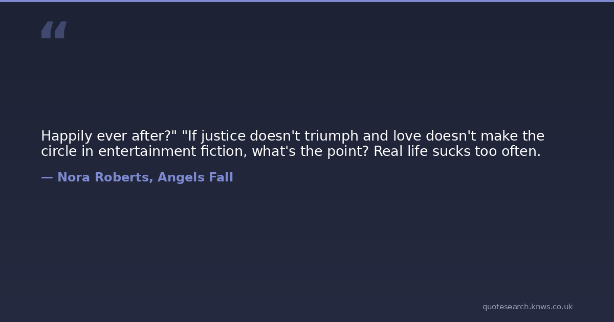 Happily ever after?" "If justice doesn't triumph and love doesn't make the circle in entertainment fiction, what's the point? Real life sucks too often.