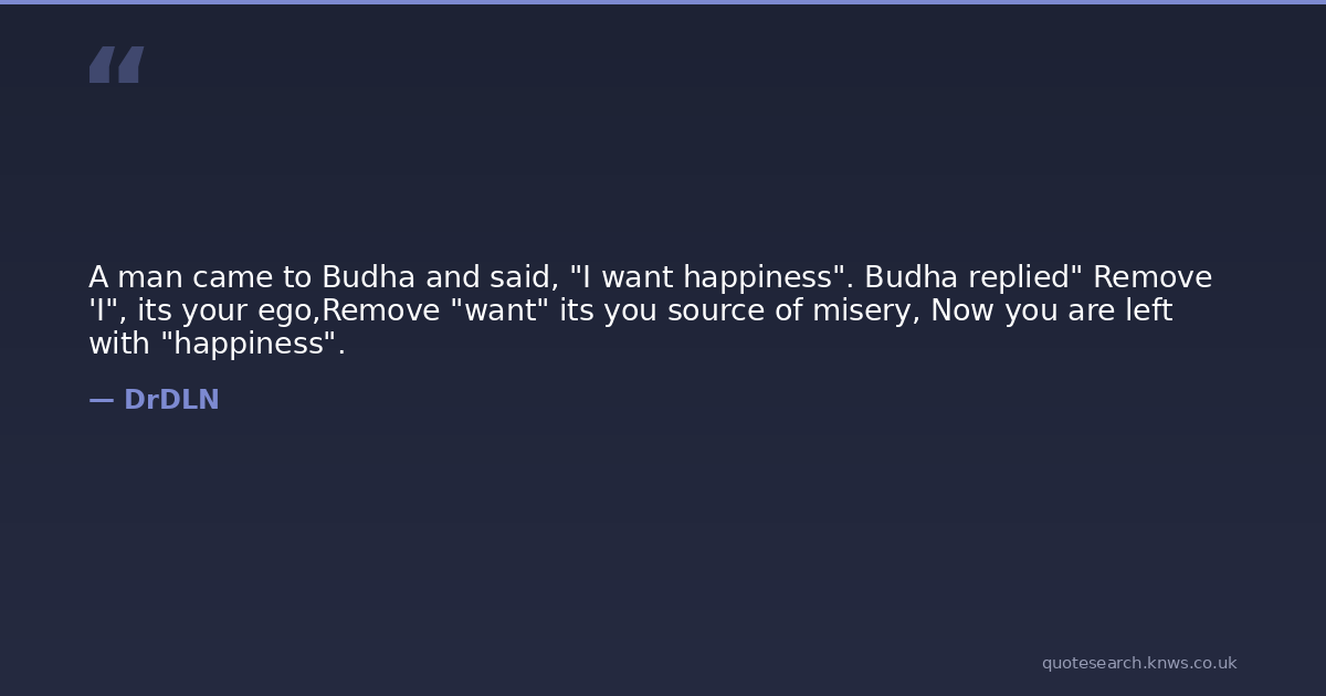 A man came to Budha and said, "I want happiness". Budha replied" Remove 'I", its your ego,Remove "want" its you source of misery, Now you are left with "happiness".