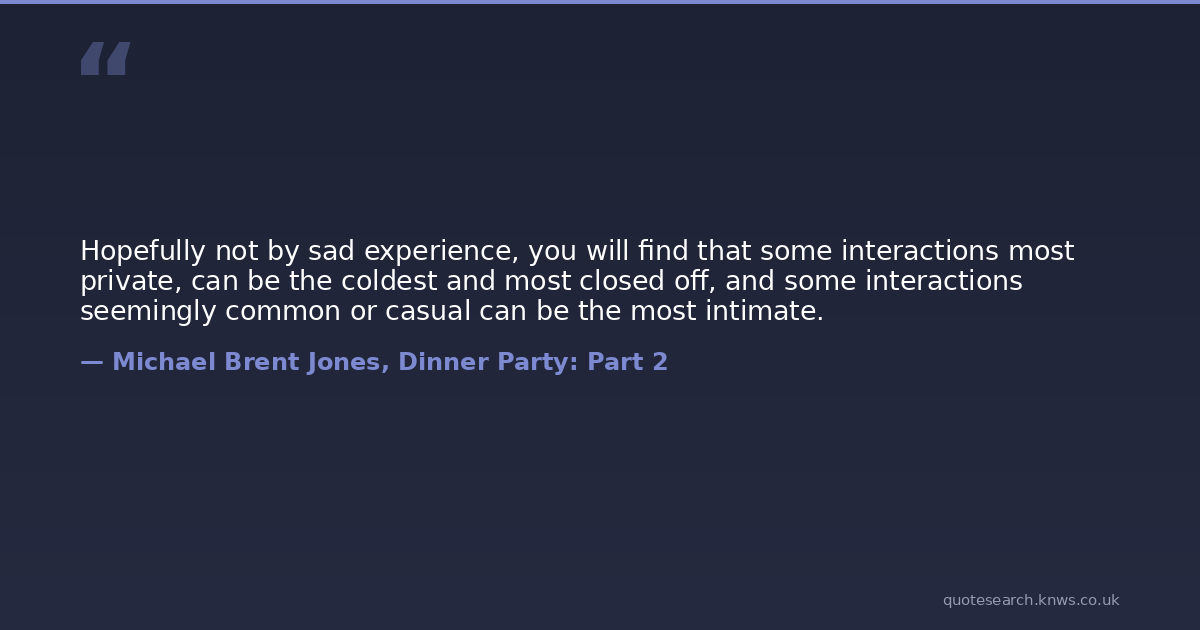Hopefully not by sad experience, you will find that some interactions most private, can be the coldest and most closed off, and some interactions seemingly common or casual can be the most intimate.