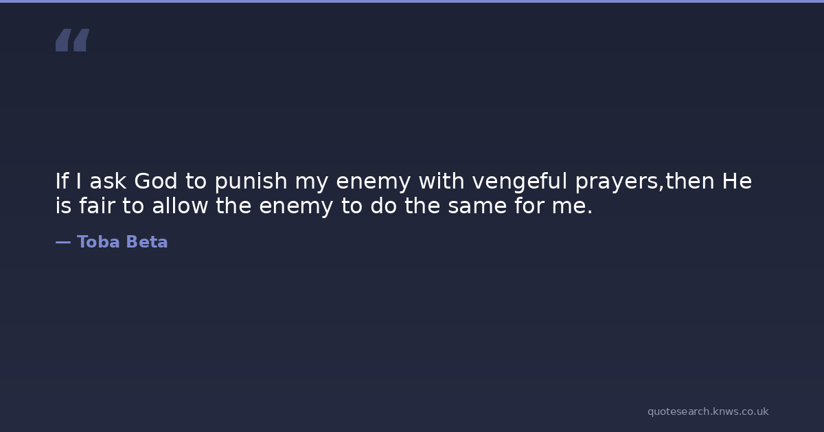 If I ask God to punish my enemy with vengeful prayers,then He is fair to allow the enemy to do the same for me.