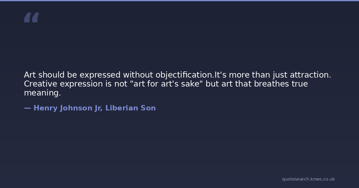 Art should be expressed without objectification.It's more than just attraction. Creative expression is not "art for art's sake" but art that breathes true meaning.