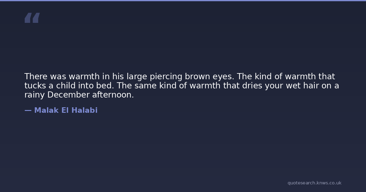 There was warmth in his large piercing brown eyes. The kind of warmth that tucks a child into bed. The same kind of warmth that dries your wet hair on a rainy December afternoon.