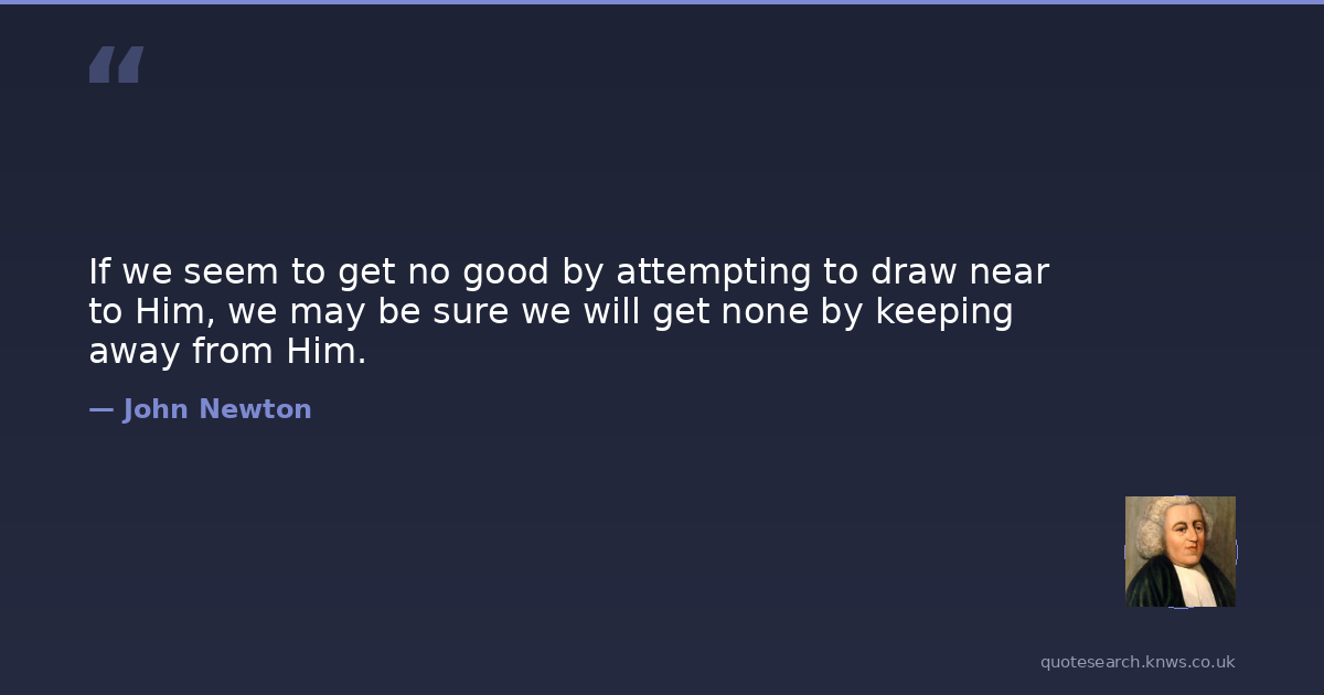 If we seem to get no good by attempting to draw near to Him, we may be sure we will get none by keeping away from Him.