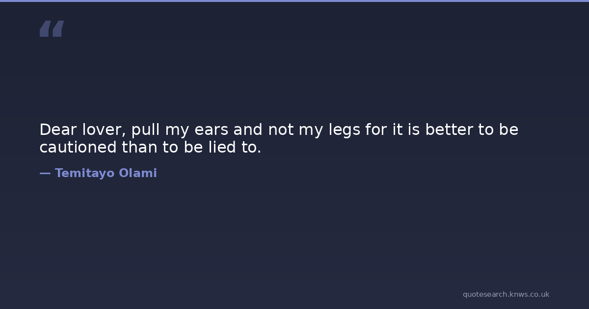 Dear lover, pull my ears and not my legs for it is better to be cautioned than to be lied to.