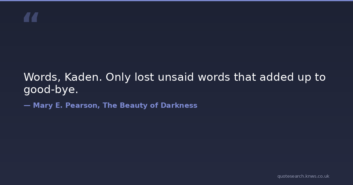 Words, Kaden. Only lost unsaid words that added up to good-bye.