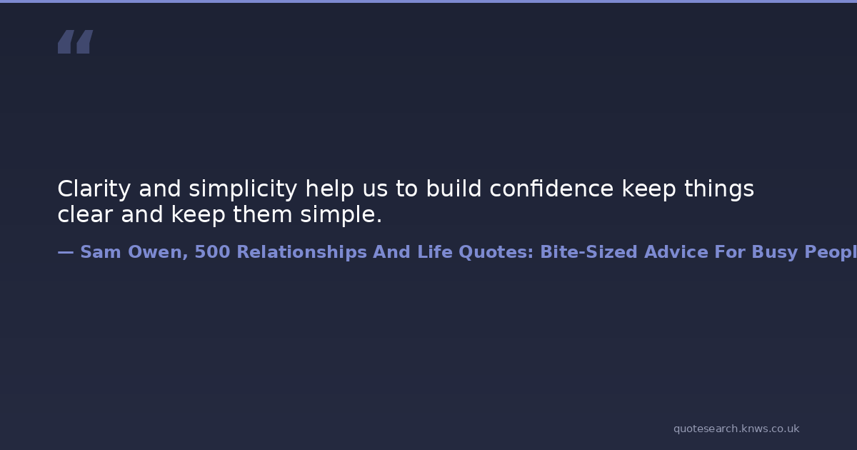 Clarity and simplicity help us to build confidence keep things clear and keep them simple.