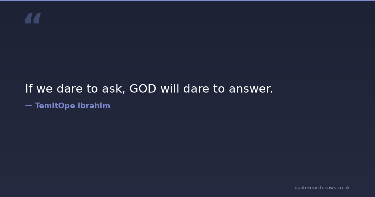 If we dare to ask, GOD will dare to answer. answered-prayers answers ask believe dare defy-odds faith inspiration inspirational-quotes pray prayer truth word Download Image Share on X Share on Facebook Copy Link