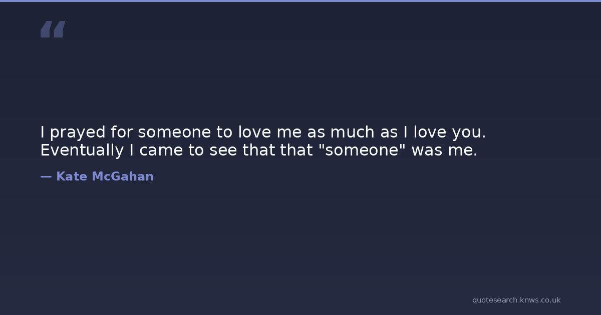 I prayed for someone to love me as much as I love you. Eventually I came to see that that "someone" was me.
