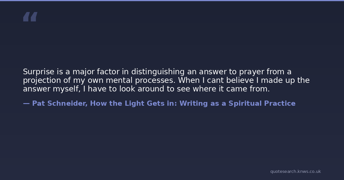 Surprise is a major factor in distinguishing an answer to prayer from a projection of my own mental processes. When I cant believe I made up the answer myself, I have to look around to see where it came from.