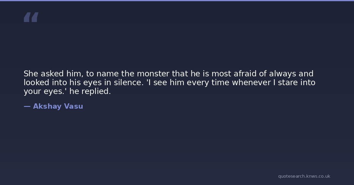 She asked him, to name the monster that he is most afraid of always and looked into his eyes in silence. 'I see him every time whenever I stare into your eyes.' he replied.