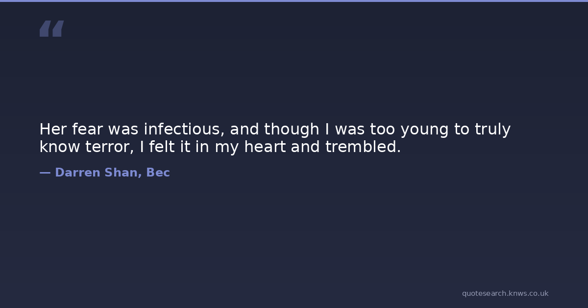 Her fear was infectious, and though I was too young to truly know terror, I felt it in my heart and trembled.