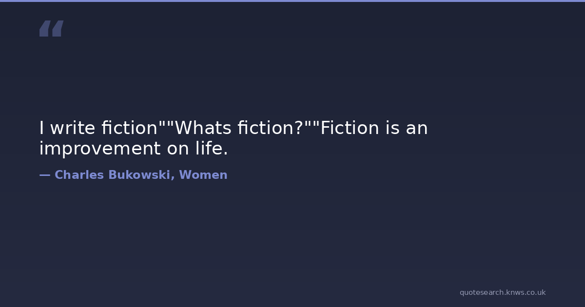 I write fiction""Whats fiction?""Fiction is an improvement on life.