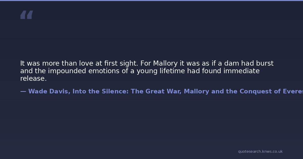 It was more than love at first sight. For Mallory it was as if a dam had burst and the impounded emotions of a young lifetime had found immediate release.