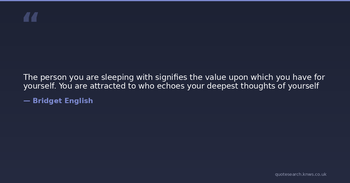 The person you are sleeping with signifies the value upon which you have for yourself. You are attracted to who echoes your deepest thoughts of yourself
