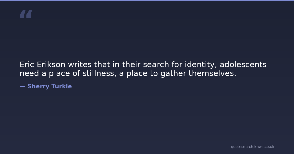 Eric Erikson writes that in their search for identity, adolescents need a place of stillness, a place to gather themselves.