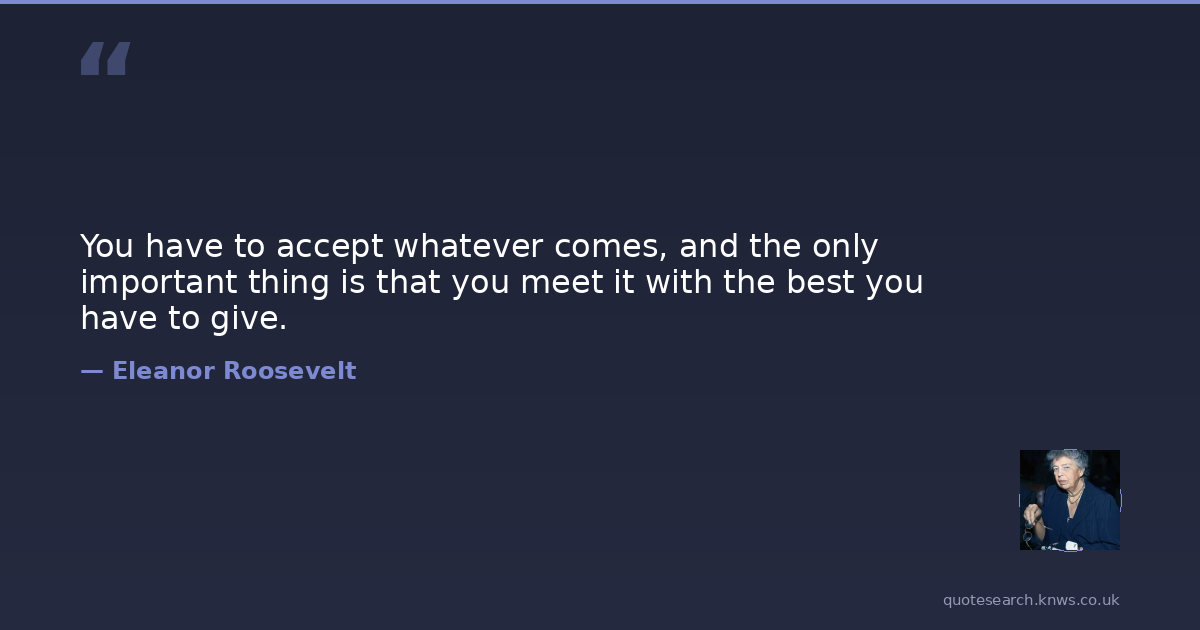 You have to accept whatever comes, and the only important thing is that you meet it with the best you have to give.