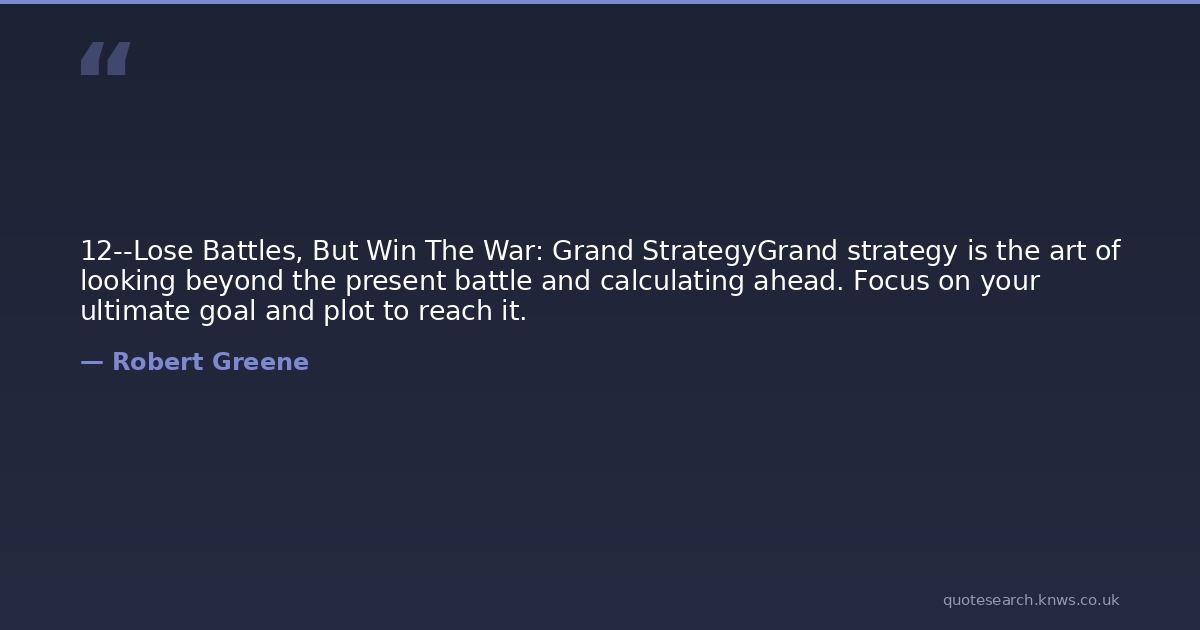 12--Lose Battles, But Win The War: Grand StrategyGrand strategy is the art of looking beyond the present battle and calculating ahead. Focus on your ultimate goal and plot to reach it.