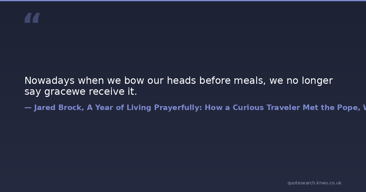 Nowadays when we bow our heads before meals, we no longer say gracewe receive it.