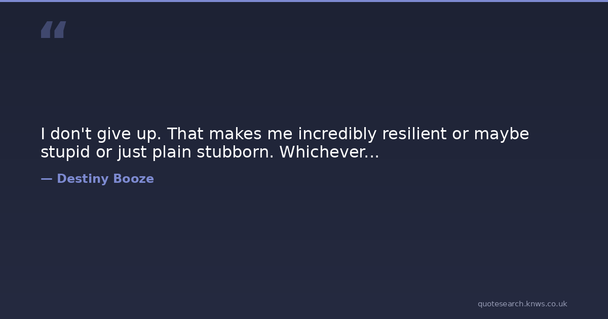 I don't give up. That makes me incredibly resilient or maybe stupid or just plain stubborn. Whichever...