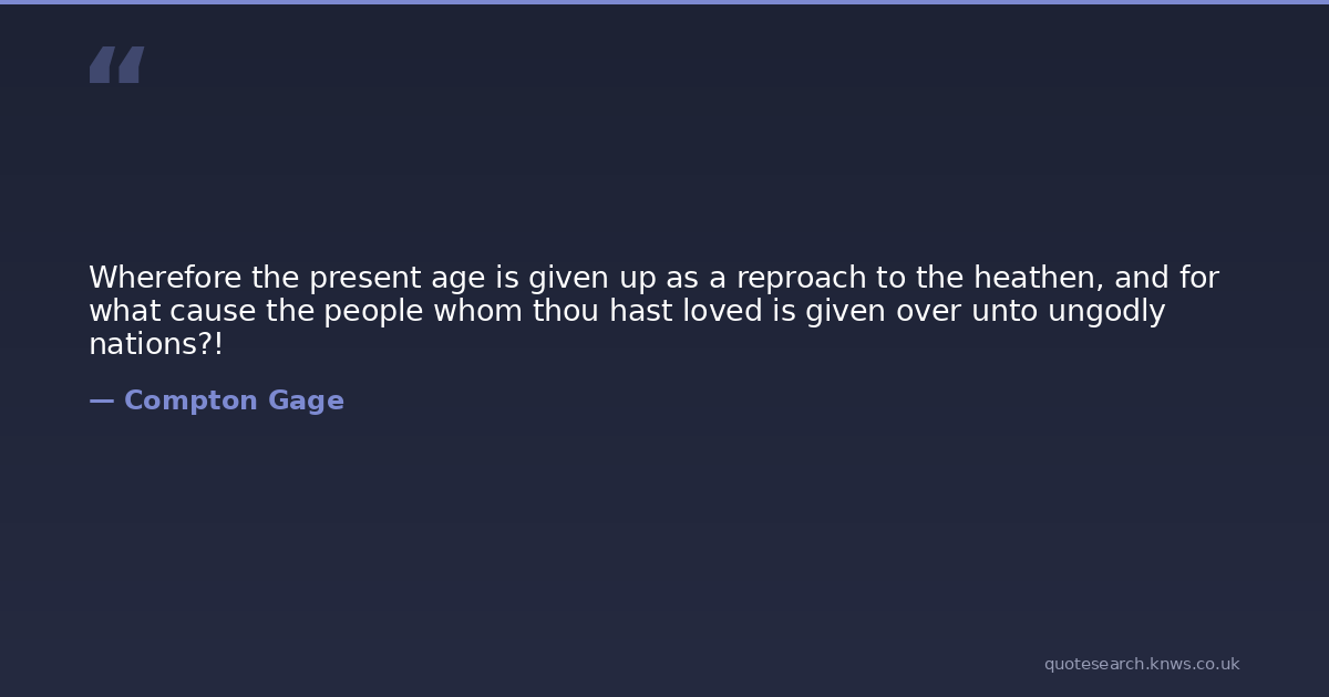 Wherefore the present age is given up as a reproach to the heathen, and for what cause the people whom thou hast loved is given over unto ungodly nations?!