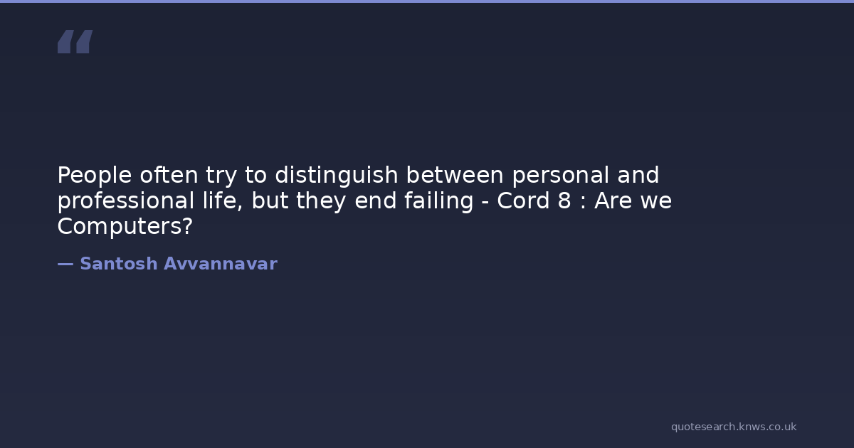 People often try to distinguish between personal and professional life, but they end failing - Cord 8 : Are we Computers?
