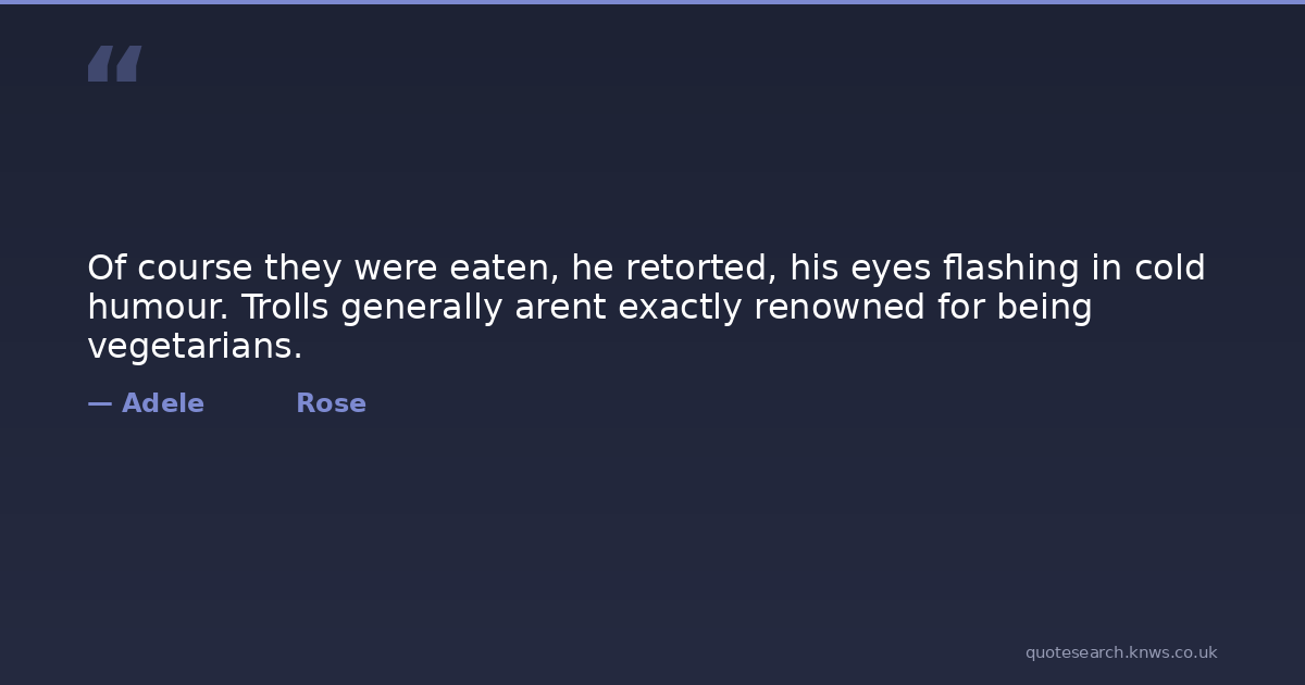 Of course they were eaten, he retorted, his eyes flashing in cold humour. Trolls generally arent exactly renowned for being vegetarians.