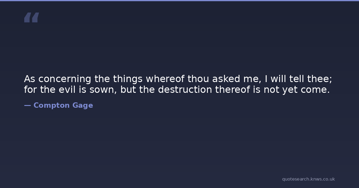 As concerning the things whereof thou asked me, I will tell thee; for the evil is sown, but the destruction thereof is not yet come.