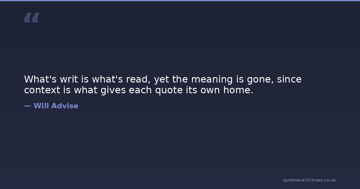 What's writ is what's read, yet the meaning is gone, since context is what gives each quote its own home.