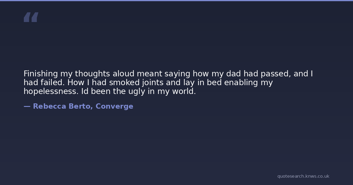 Finishing my thoughts aloud meant saying how my dad had passed, and I had failed. How I had smoked joints and lay in bed enabling my hopelessness. Id been the ugly in my world.