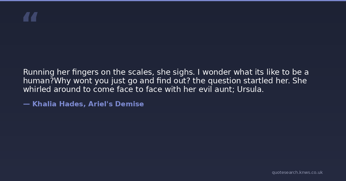 Running her fingers on the scales, she sighs. I wonder what its like to be a human?Why wont you just go and find out? the question startled her. She whirled around to come face to face with her evil aunt; Ursula.