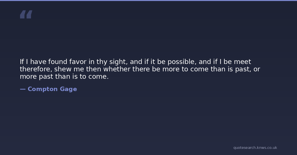 If I have found favor in thy sight, and if it be possible, and if I be meet therefore, shew me then whether there be more to come than is past, or more past than is to come.