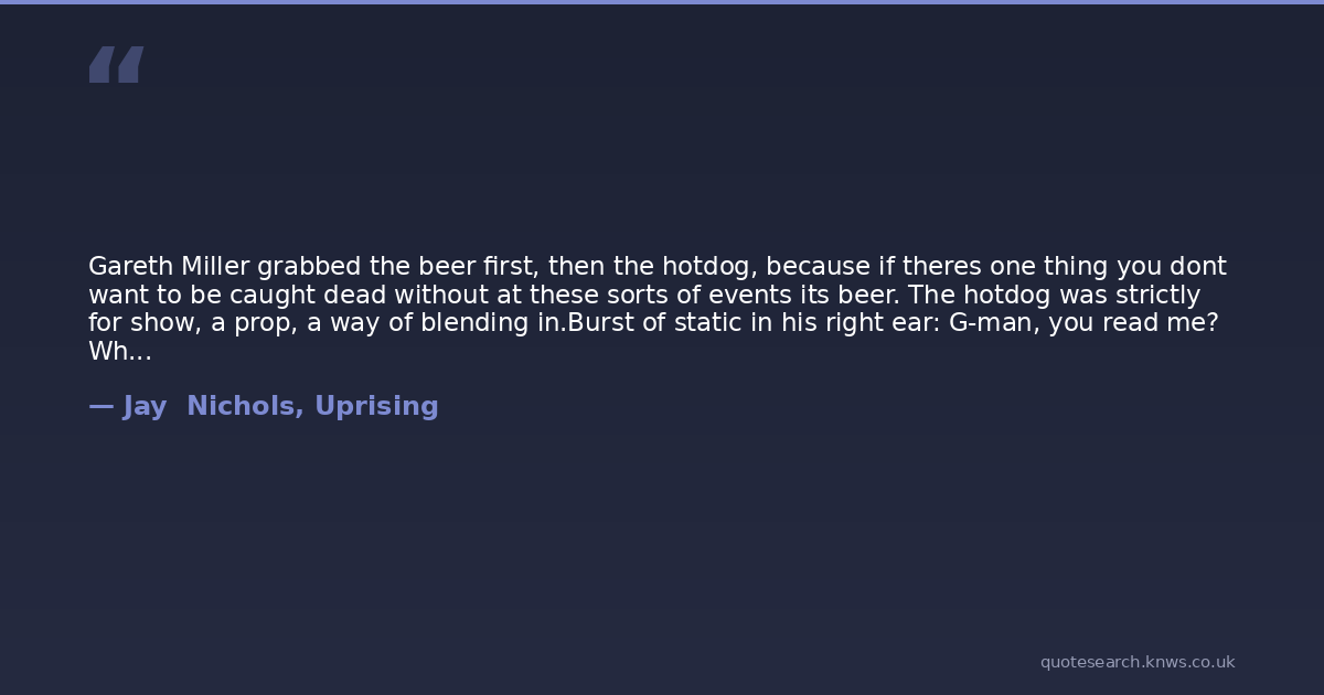 Gareth Miller grabbed the beer first, then the hotdog, because if theres one thing you dont want to be caught dead without at these sorts of events its beer. The hotdog was strictly for show, a prop, a way of blending in.Burst of static in his right ear: G-man, you read me? Whats yo twenty, dawg?Gareth departed the concession stand, stopped, looked down at his hands, and tossed the hotdog into the first trash receptacle he saw. Raising his wrist to his mouth, he spoke into the cuff of his long-sleeved tee. Concession stand, Section B. Over.Allowing his hand to linger by his chin, he gingerly scratched his cheek as if he had meant to do it all along. The same voice: Yo, Im in position. Ready when you is.Gareth cringed while crossing the wide concourse, checking both directions. The giant hallway was the main drag of a ghost town, its only residents a solitary custodian sweeping debris into a portable waste bin and the concession crew to his rear.
