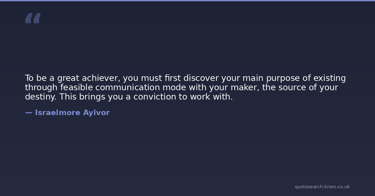 To be a great achiever, you must first discover your main purpose of existing through feasible communication mode with your maker, the source of your destiny. This brings you a conviction to work with.