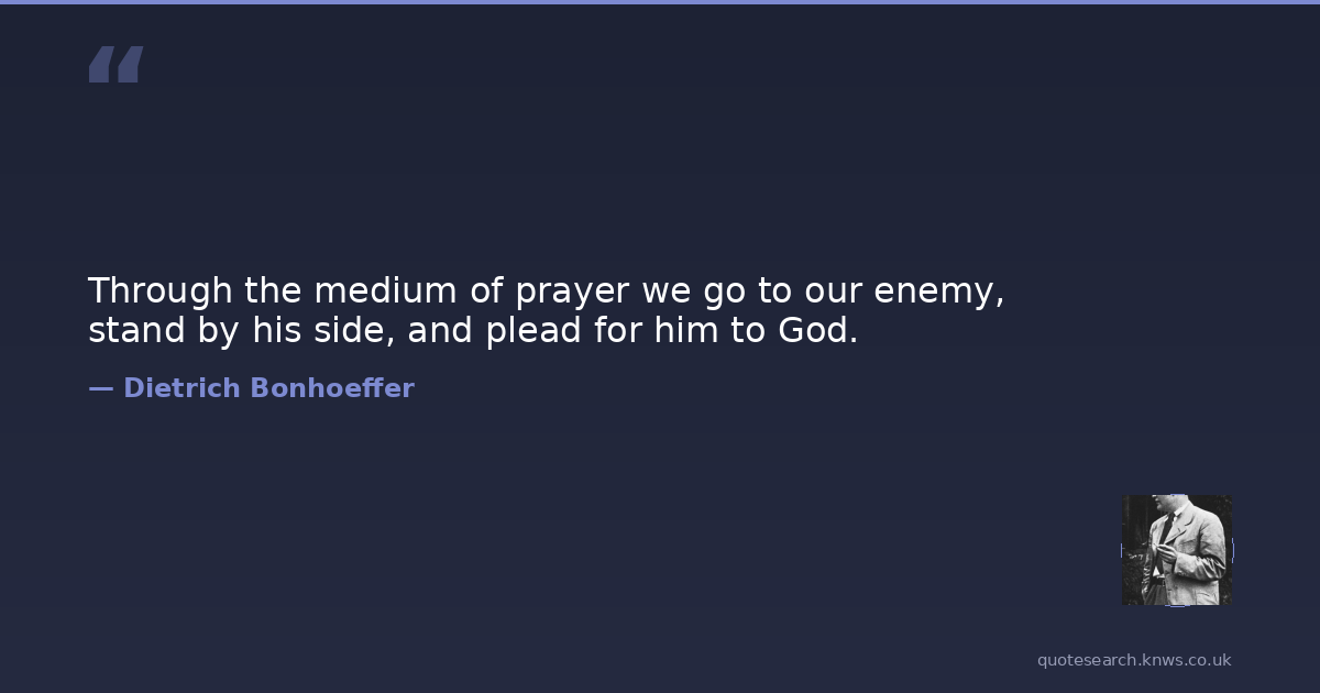 Through the medium of prayer we go to our enemy, stand by his side, and plead for him to God.