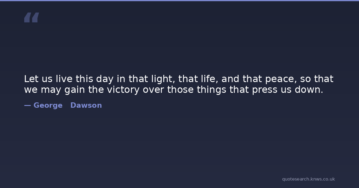 Let us live this day in that light, that life, and that peace, so that we may gain the victory over those things that press us down.