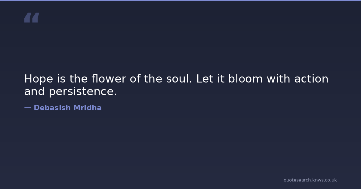 Hope is the flower of the soul. Let it bloom with action and persistence.