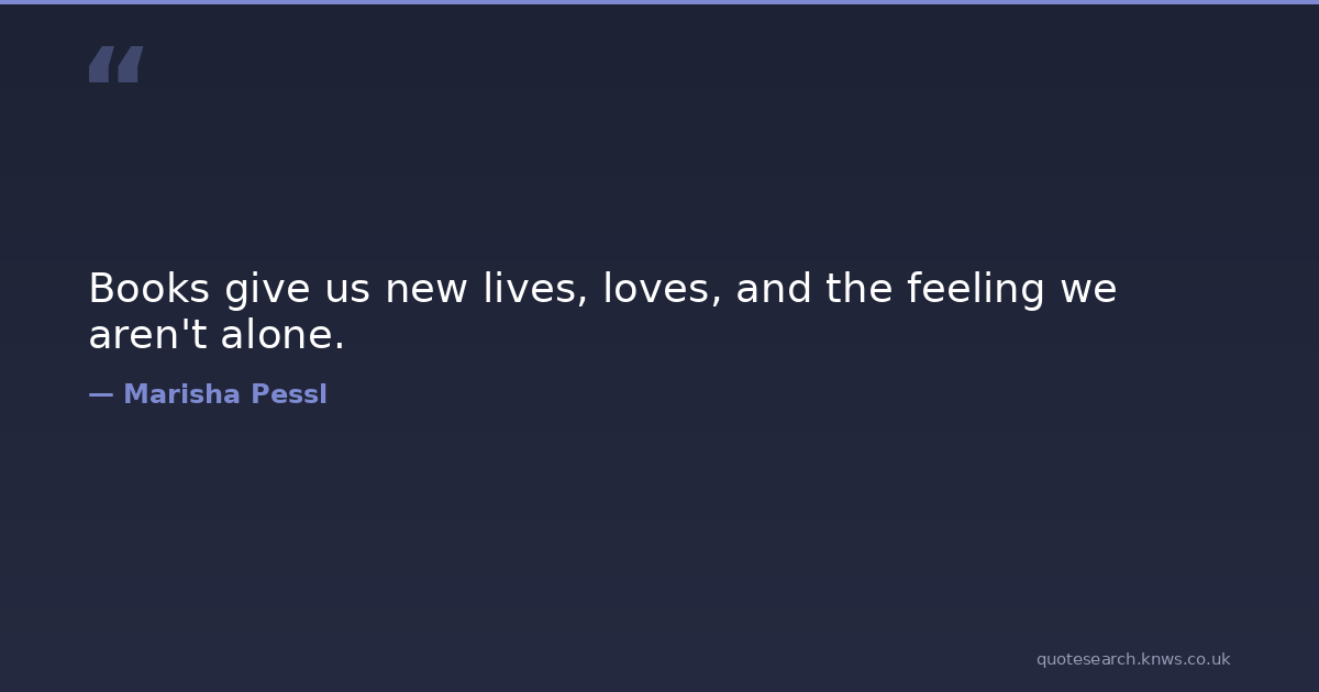 Books give us new lives, loves, and the feeling we aren't alone. books marisha-pessl reading Download Image Share on X Share on Facebook Copy Link