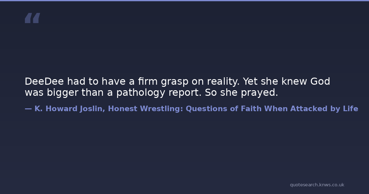 DeeDee had to have a firm grasp on reality. Yet she knew God was bigger than a pathology report. So she prayed.