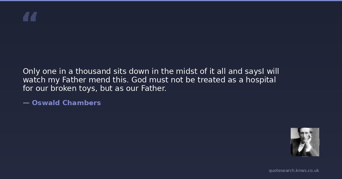 Only one in a thousand sits down in the midst of it all and saysI will watch my Father mend this. God must not be treated as a hospital for our broken toys, but as our Father.