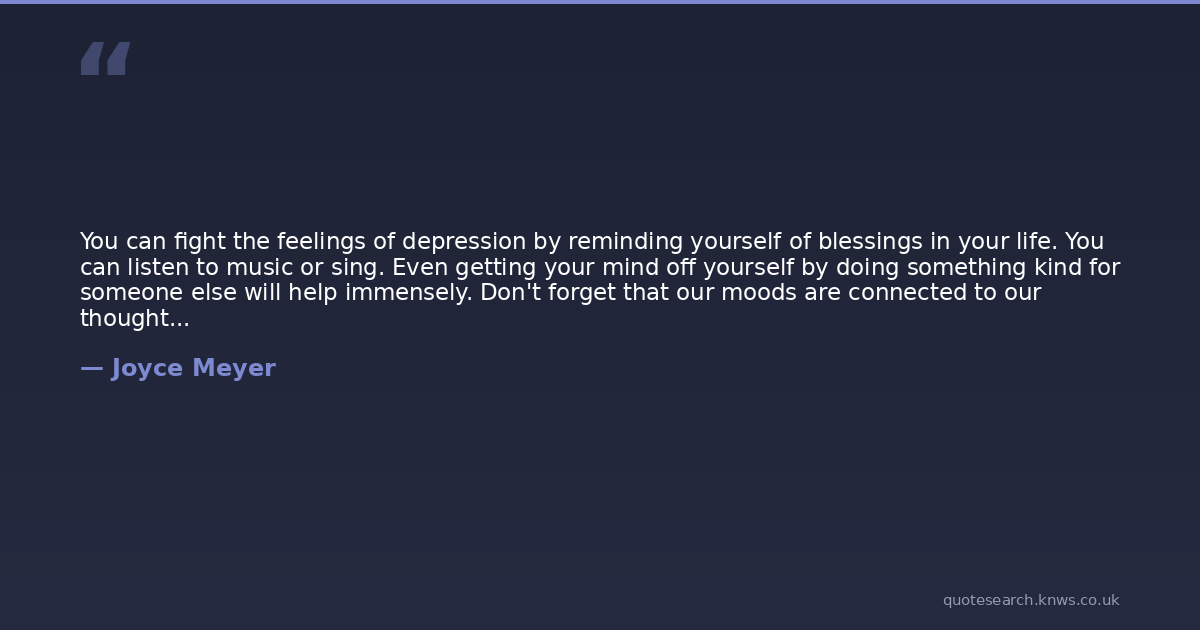 You can fight the feelings of depression by reminding yourself of blessings in your life. You can listen to music or sing. Even getting your mind off yourself by doing something kind for someone else will help immensely. Don't forget that our moods are connected to our thoughts; therefore, I urge you to take notice of what you're thinking about when you feel depressed. You may find the source of your problem.