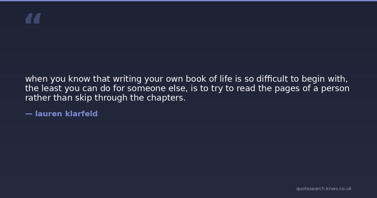 when you know that writing your own book of life is so difficult to begin with, the least you can do for someone else, is to try to read the pages of a person rather than skip through the chapters.